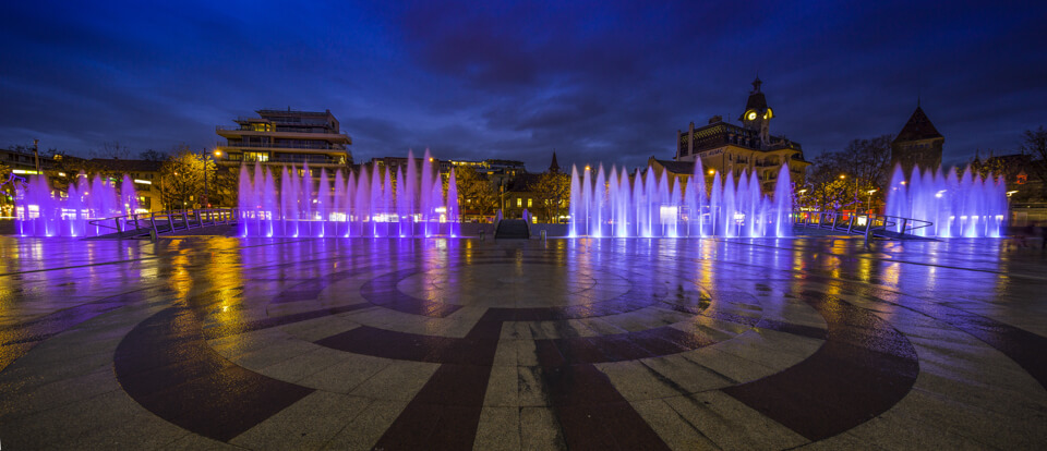 Place de la NavigationFarbige Springbrunnen in Lausanne