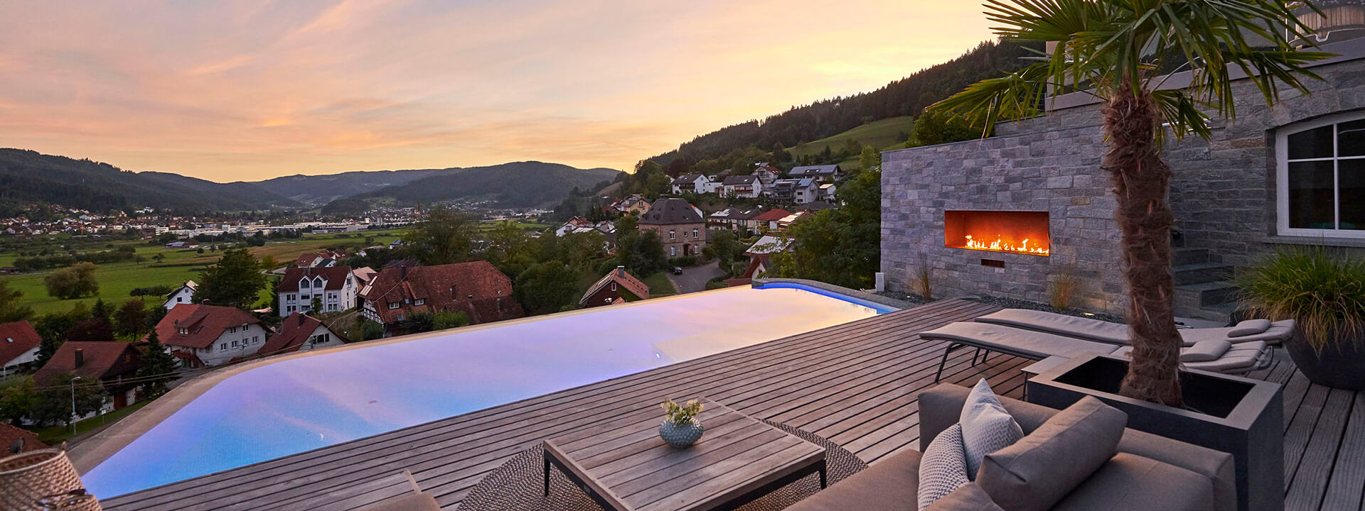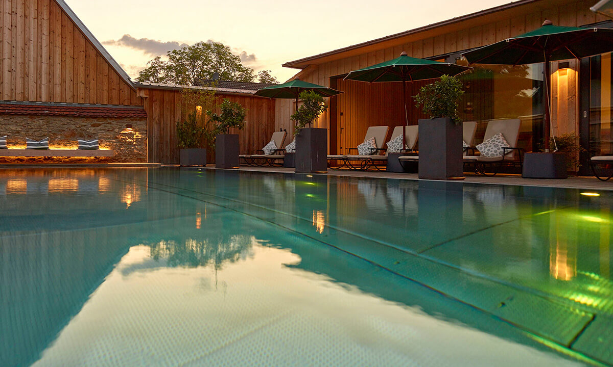 Denn damit kommen wir zur eigentlichen Attraktion eines jeden Pools: dem Unterwasserlicht. Auf den ersten Blick wirkt es unscheinbar, denn am Tag fällt es nicht sofort ins Auge. Doch sobald die ersten Abendstunden anbrechen sorgen Poolscheinwerfer für ganz besondere Eindrücke. Licht ist das wichtigste Gestaltungselement Ihrer gesamten Wellness-Oase.