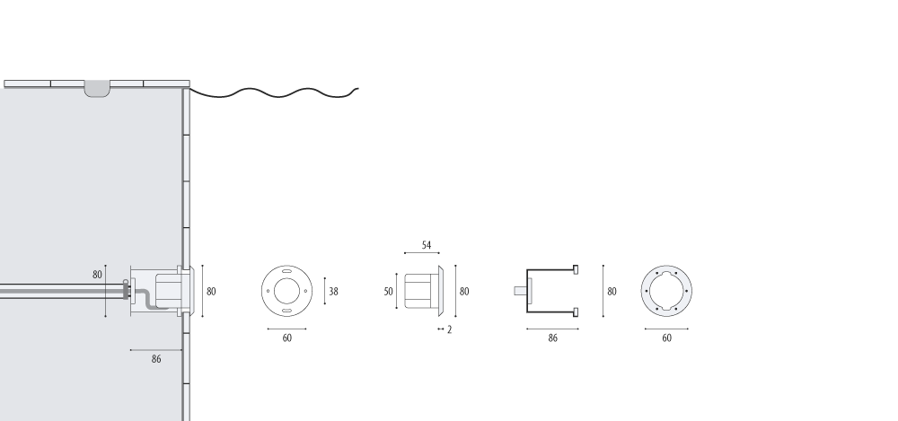 - Passendes Einbaugehäuse ist je nach Einbauart- und situation auszuwählen.
