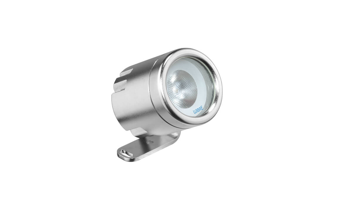 - aus V4A-Edelstahl mit 1,5 m Kabelschutzschlauch und Abschlussstutzen M20 Kunststoff, für Wandeinbau, für Einbau in Becken mit Klebe-/Folienanstrich (Klebeflansch ø 150 mm)