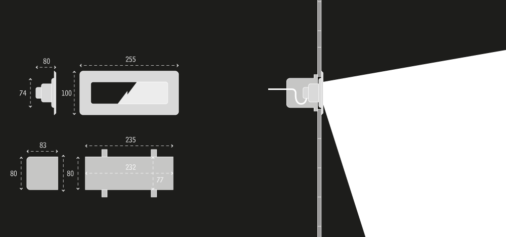 - Einbaugehäuse aus V4A-Edelstahl mit 1,5 m Kabelschutzrohr