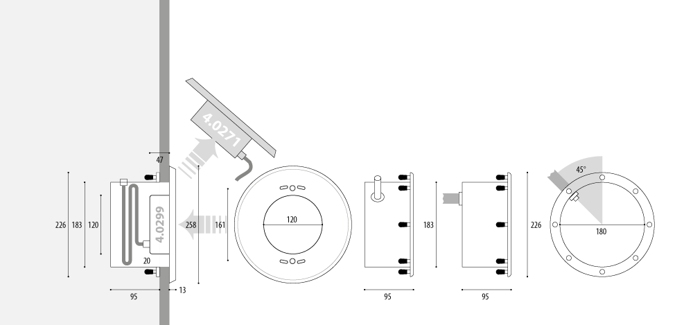 - Version zum Austausch von bestehenden PAR56-Scheinwerfern aller gängigen Hersteller lieferbar (Blende mit verschiedenen Loch-Teilkreisen).