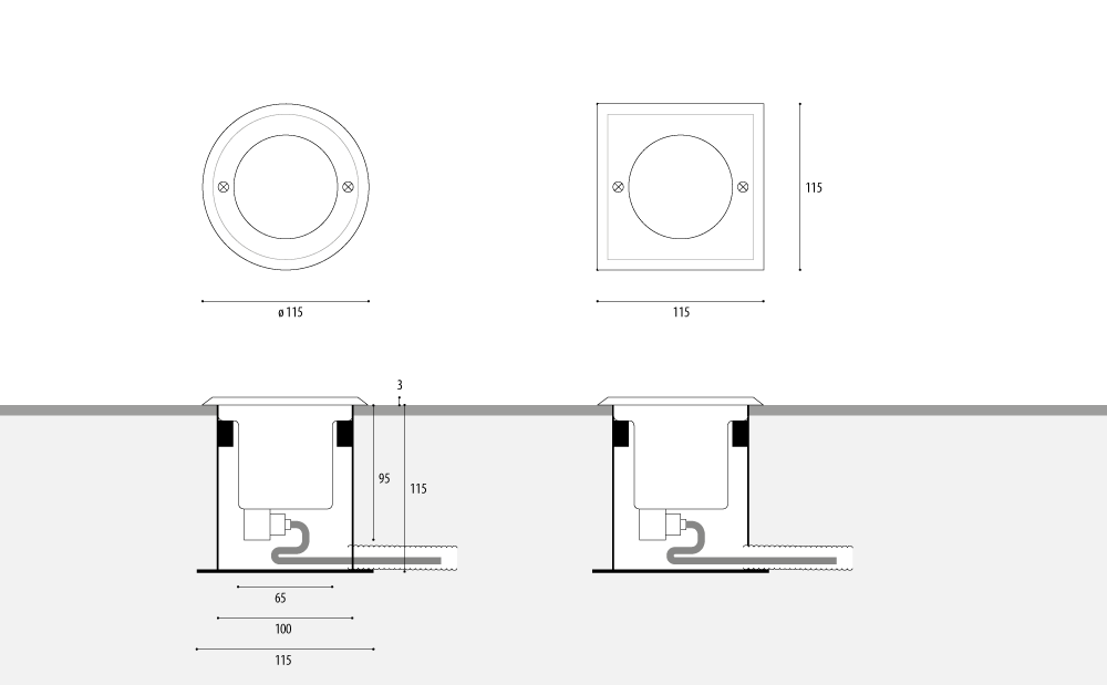 - Einbaugehäuse aus Kunststoff im Lieferumfang enthalten, Einbaugehäuse aus V4A Edelstahl auf Anfrage