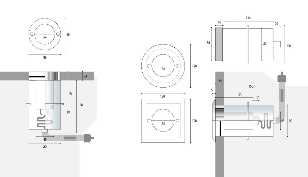• für den planebenen Einbau oder mit runder bzw. quadratischer Aufsatzblende