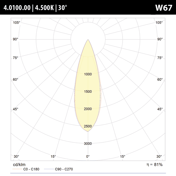 | 4.0100.30.13 | 4 POW-LED | 2010 lm | 4500K neutral white | total 18 W | CC 1200mA @12 V-DC | 30° medium | UW, 2x1,5 qmm | ||