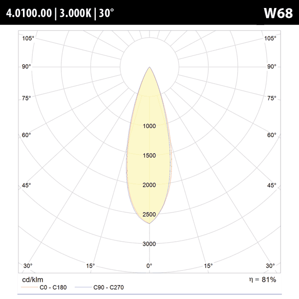 | 4.0100.30.11 | 4 POW-LED | 2300 lm | 6000K cold white | total 18 W | CC 1200mA @12 V-DC | 30° medium | UW, 2x1,5 qmm | ||