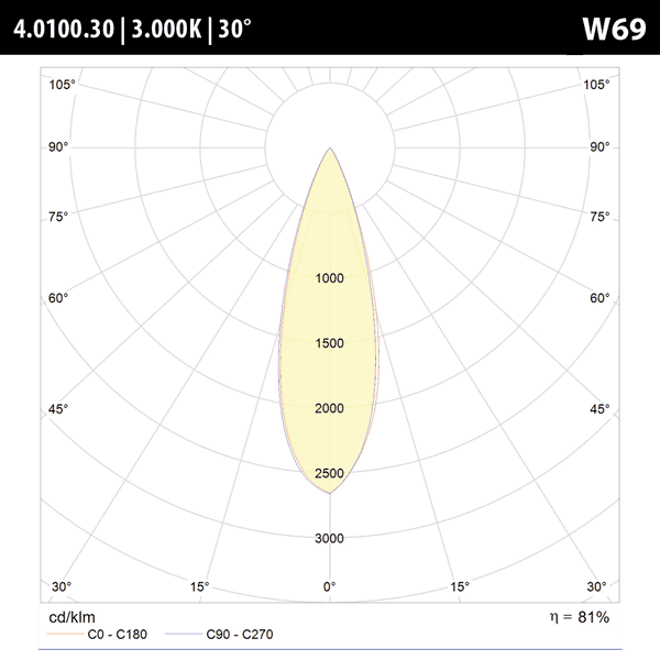 | 4.0100.30.12 | 4 POW-LED | 1880 lm | 3000K warm white | total 18 W | CC 1200mA @12 V-DC | 30° medium | UW, 2x1,5 qmm | ||