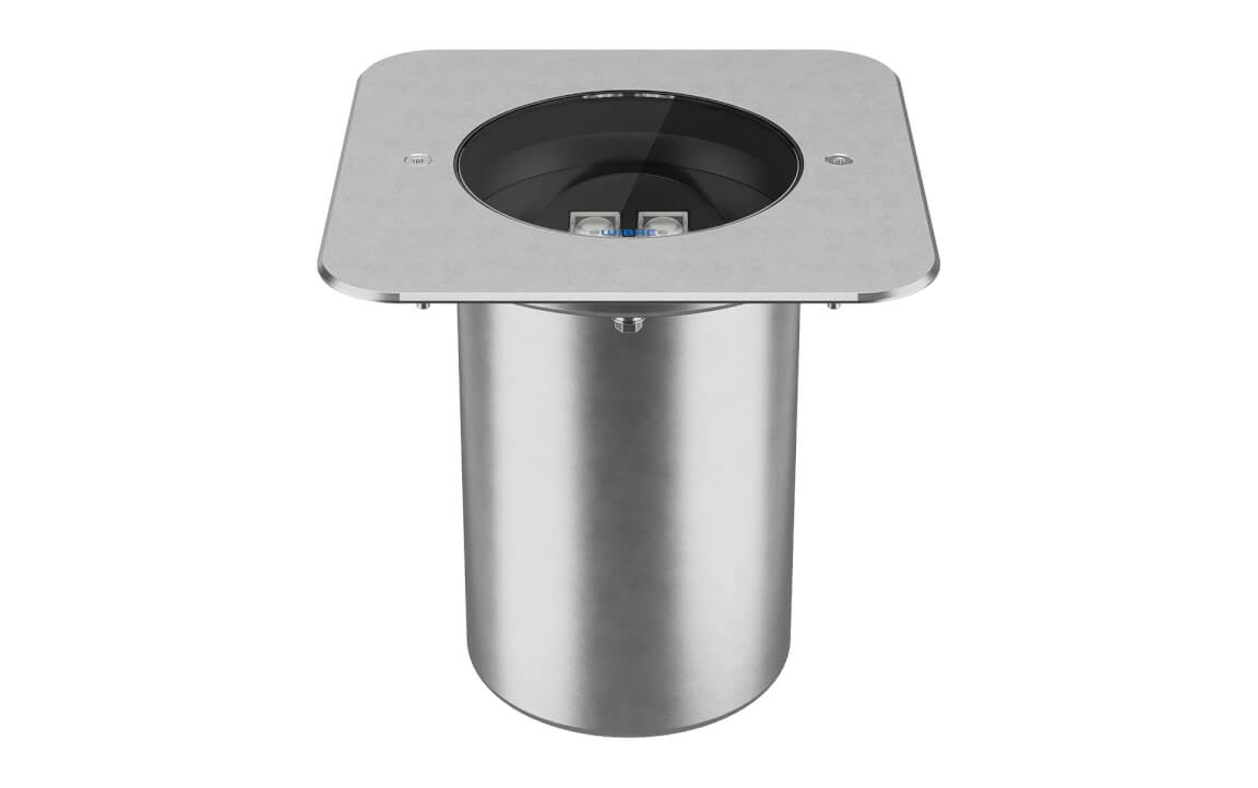 A new type of installation in the ground simplifies mounting and utilisation. The stainless steel installation housing, consisting of three parts, is highly resilient and lightweight due to its structure, yet it is also sustainable and offers sufficient space for junction boxes.