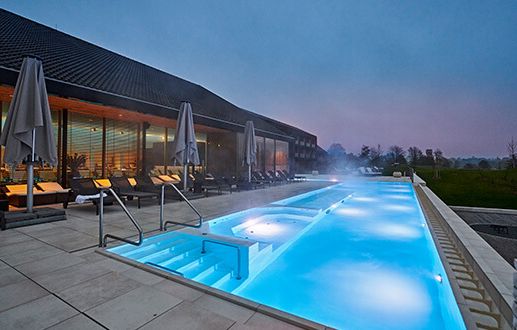 For hotel guests seeking relaxation, the diverse spa world at the Öschberghof offers a successful change - whether relaxing spa areas with whirlpools, an indoor sports pool or the outdoor infinity pool with a breathtaking panoramic view. Only through professional lighting design combined with high-quality luminaires do these water worlds unfold their full effect.