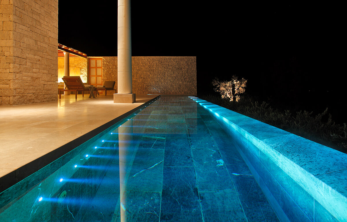For accentuation in small swimming pools, whirlpools and water displays.