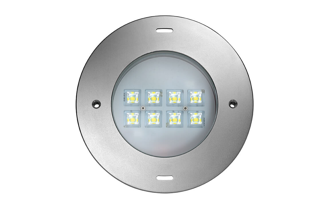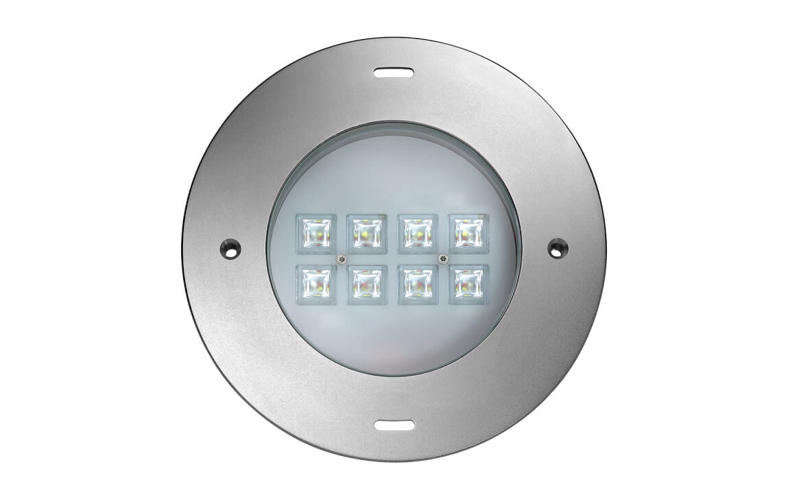 - saline verison, made of V4A stainless steel with 1.5 m protective cable tube and M20 plastic terminating connection, for installation in pools with adhesive/foil coating (adhesive flange ø 360 mm)
