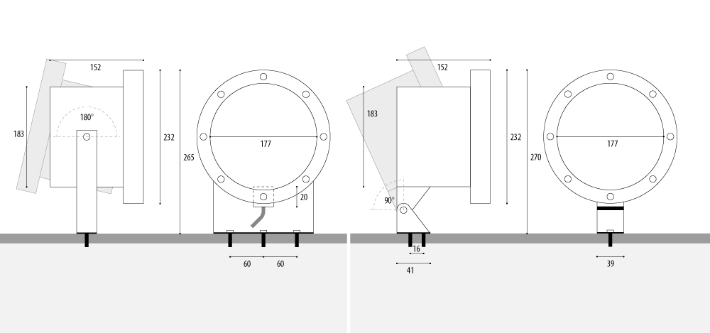 | Versions: Only underwater operations - Mounting foot adjustable through 90° | |||||||||
