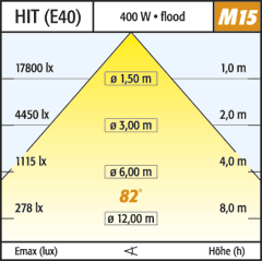 | 4.2000.00.40 | HIT (E40) | 42.000lm | 4200K | 400W | 230V | Si, 3x2,5 qmm | M15 | ||