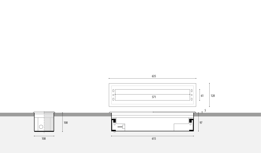 - Rectangular cover, made of stainless steel 316Ti, height 5 mm