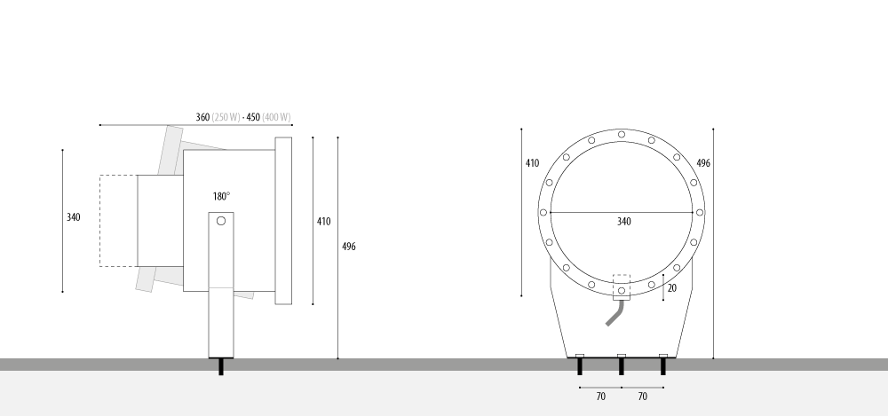 | 4.4110.00.40 | HSE-MF | 54.000lm | 2000K | 400W | E40 | 80° | Si, 3x2,5 qmm | ||