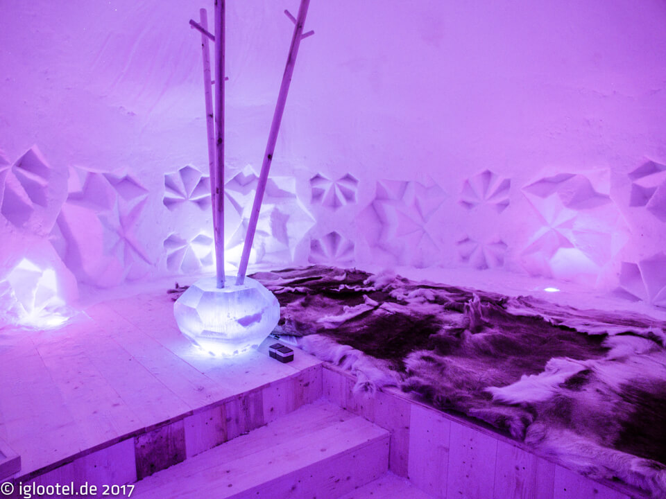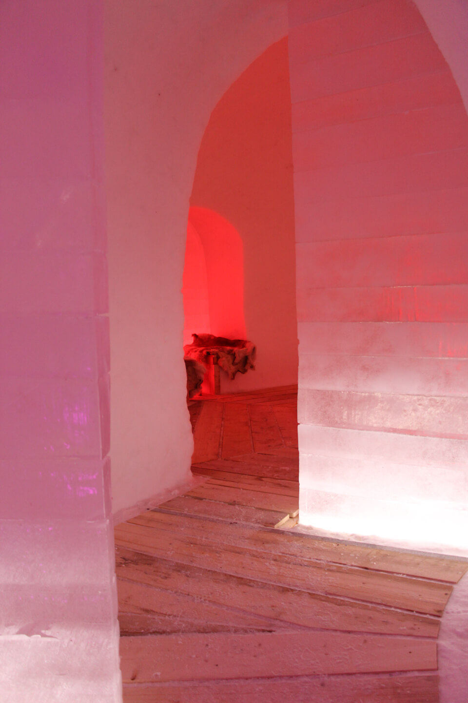 L'hôtel, construit exclusivement en neige et glace est un élément fort de la Laponie suédoise. Grâce à un éclairage spectaculaire, chaque pièce ou igloo est un régal pour les yeux. Tous les ans, les projecteurs résistent de nouveau aux mauvaises conditions climatiques du Grand Nord.