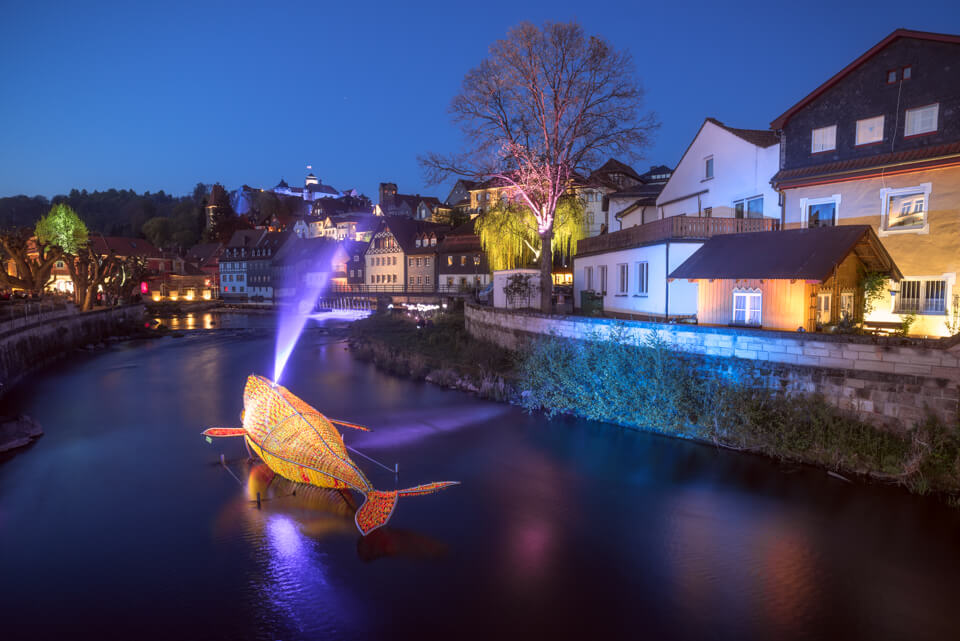 La ville de Kronach, "la porte du Frankenwald" ravit toute l'année ses visiteurs avec son ancienne ville bien conservée, ses maisons historiques à colombages et la forteresse de Rosenberg. Et pourtant, les organisateurs sont passés au cran supérieur avec la création de "Kronach leuchtet", une toute nouvelle expérience. La vieille ville et d'autres quartiers sont remis sur une scène illuminée tous les ans au mois de mai.