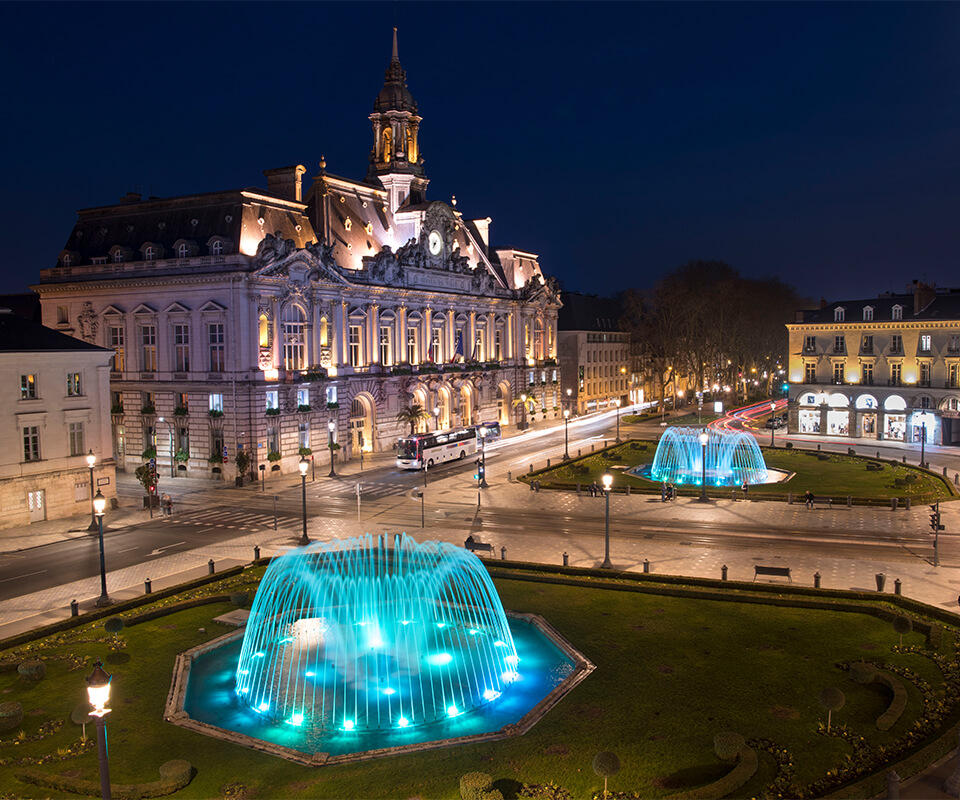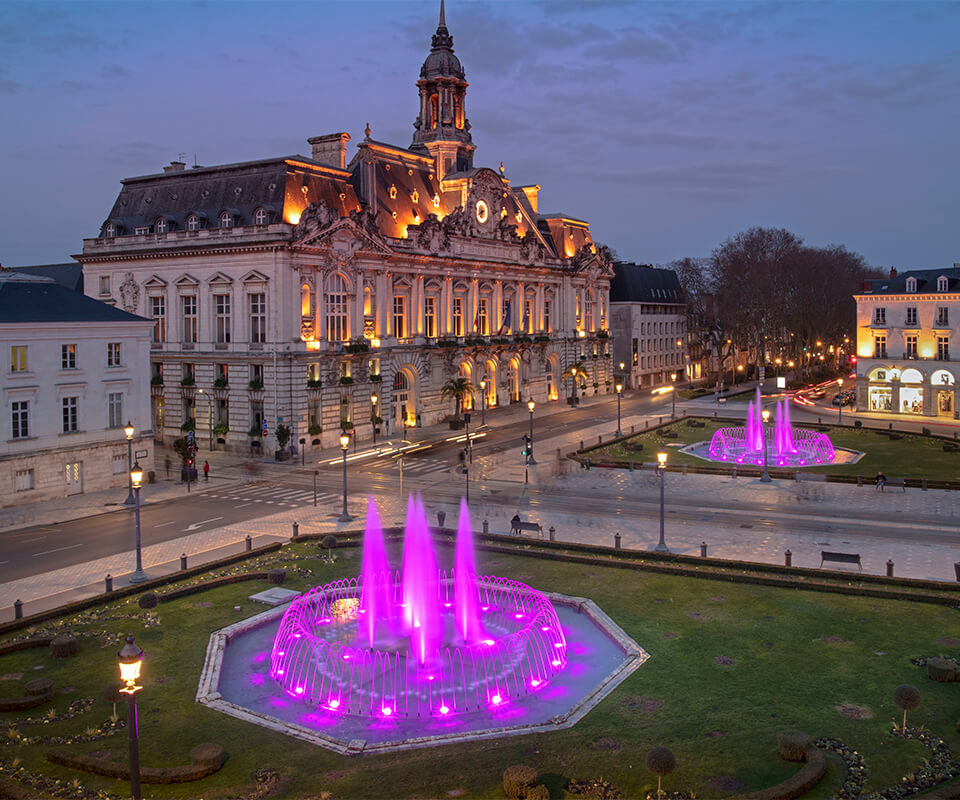 Place Jean JaurèsDes fontaines majestueusement illuminées à Tours