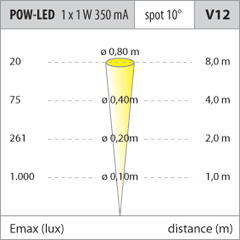 | 4.0011.20.03 | 1 POW-LED | 155 lm | 4500K neutral white | total 2 W | CC 350 mA | <40°C | 10° spot | UW, 2x0,5 qmm | |