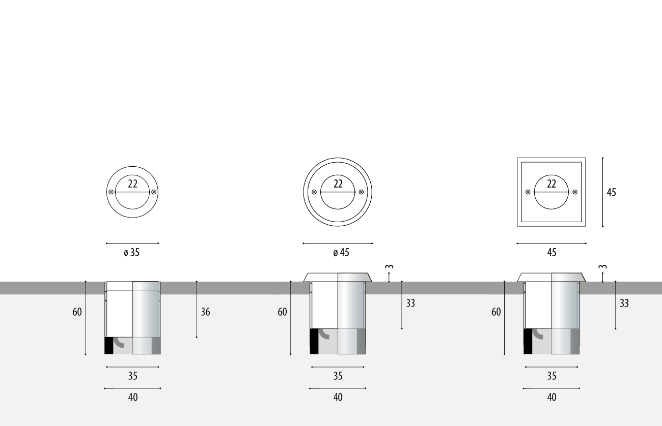 - Pour un montage dans le sol ou des parois avec tube de montage en aluminium