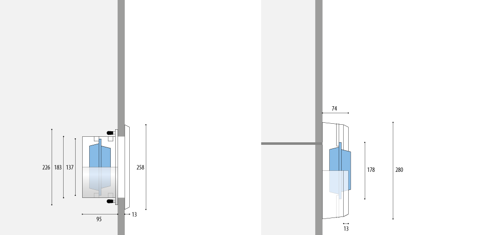 - Modèles standard pour béton/carrelage, flasque de pression et flasque de collage