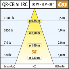 | 4.0072.30.50 | QR-CBC51 (IRC) | 870 | 3000K | 50W | 12V-AC | 36° | UW, 2x1,5 qmm | ||
