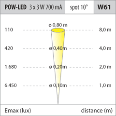 | 4.0072.30.01 | 3 POW-LED | 915 lm | 6000K cold white | total 9 W | CC 700 mA | 10° spot | UW, 2x1,5 qmm | ||