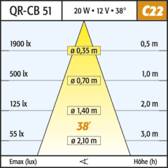 | 4.0086.00.20 | QR-CBC51 | 210 | 3000K | 20W | 12V-AC | GU5,3 | 36° | Si, 2x1,5 qmm | |
