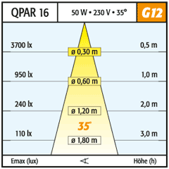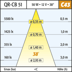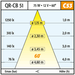 - Angle de rayon: Halogen QR-CB51: 10°, 24°, 38°, 60°