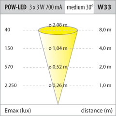 | 4.0086.00.12 | 3 POW-LED | 750 lm | 3000K warm white | total 9 W | CC 700 mA | 30° medium | UW, 2x1,5 qmm | ||
