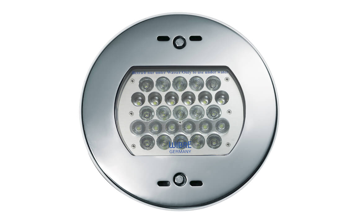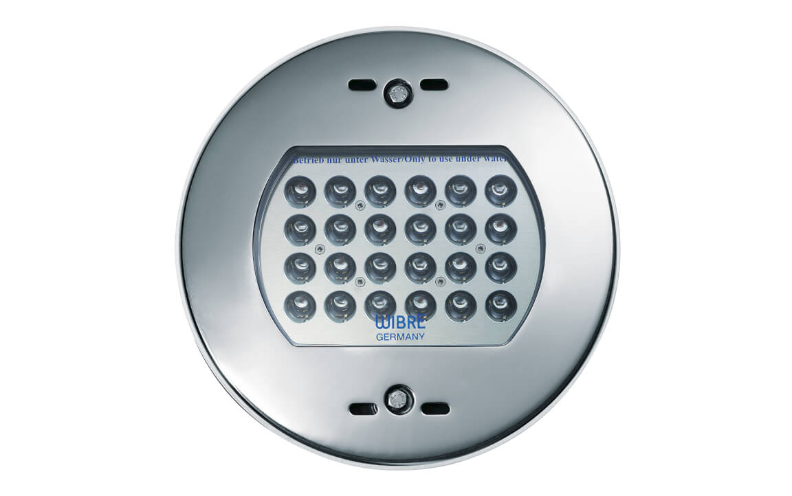 Pour un montage ras de sol. Pour l'éclairage de piscines de grande taille ou de taille moyenne.