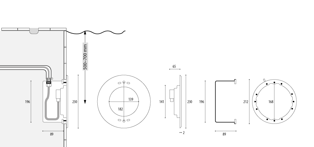 - Boîtier d‘encastrement en acier inoxydable 904L avec gaine de protection pour câble de 1,5 m