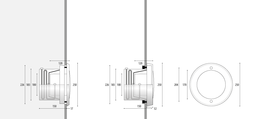 - Avec collerette de 17 mm (4.0301) ou 32 mm (4.0311) de haut sur base d’une ampoule PAR56